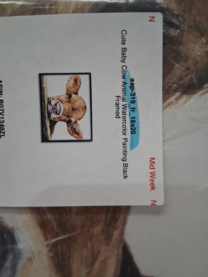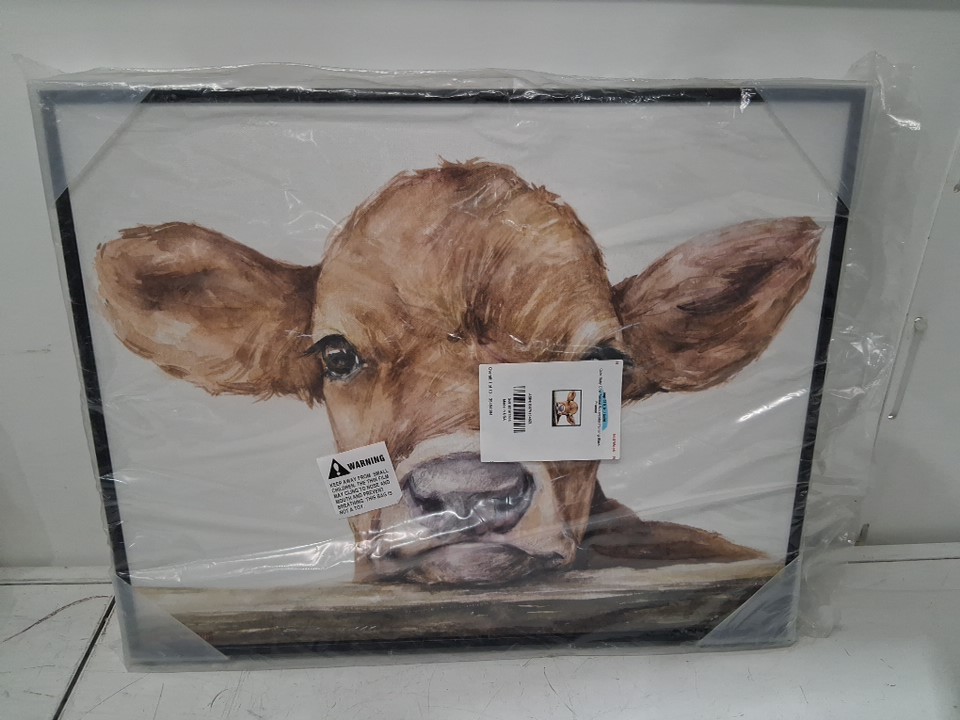 cute baby cow watercolour painting with black frame - 14.4'' x 14'' - Brown/White (Model : 049182167866)