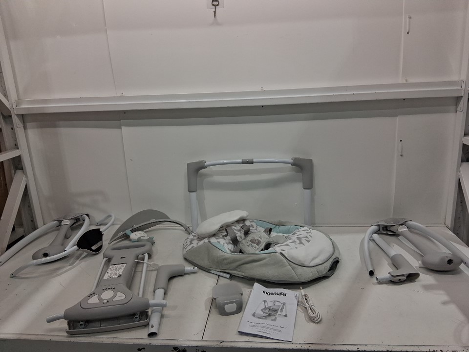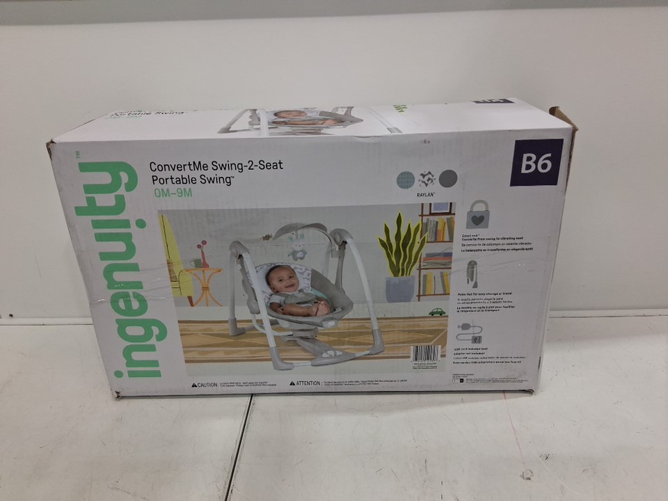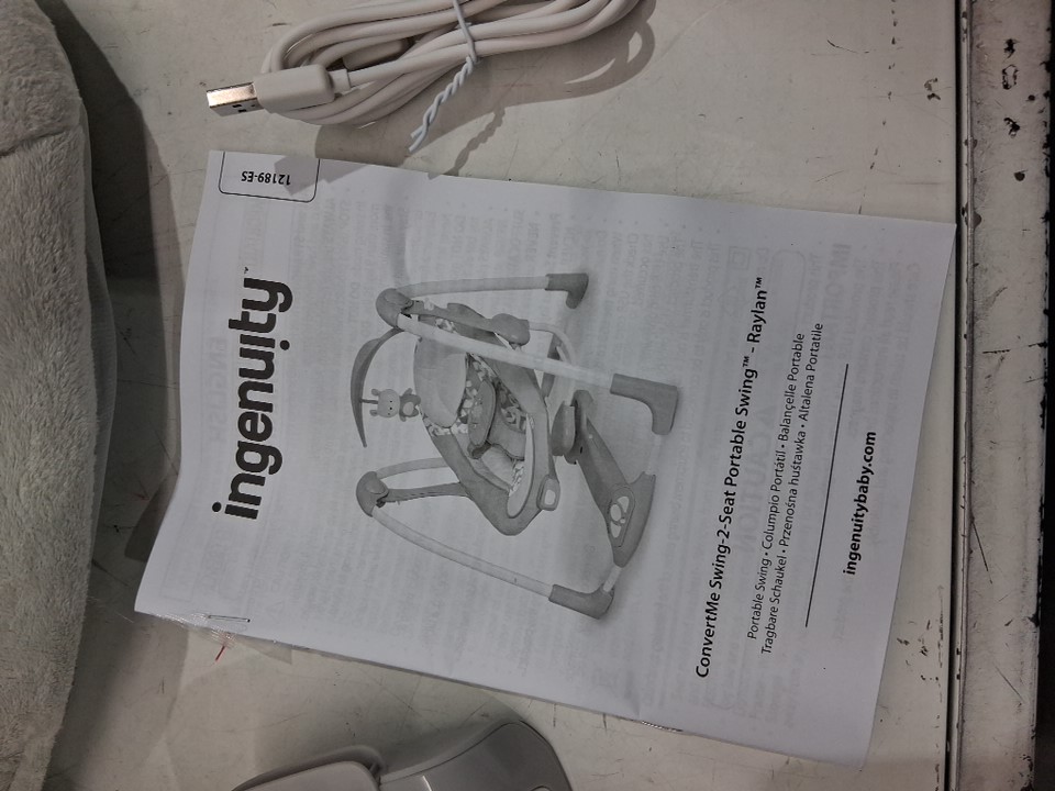 INGENUITY convertme 2-in-1 compact portable plug in automatic baby swing and infant seat - 0 to 9 months - 6lbs to 20lbs - grey (model: 12189-es)