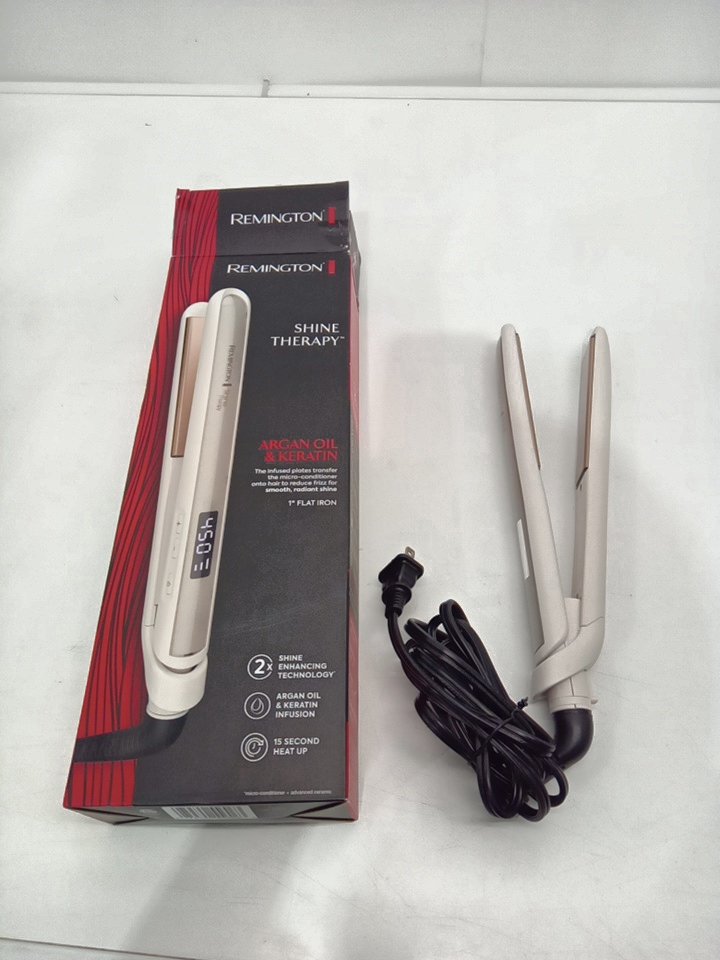 REMINGTON SHINE THERAPY FLAT HAIR STRAIGHTENER IRON INFUSED WITH ARGAN OIL & KERATIN - 1"- WHITE (MODEL: S9511)