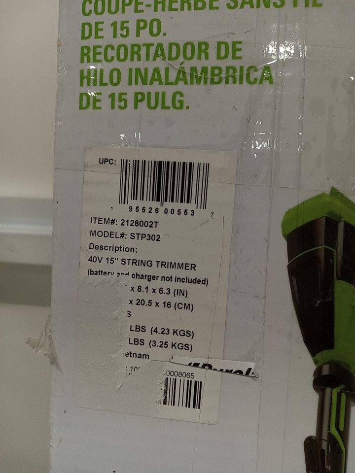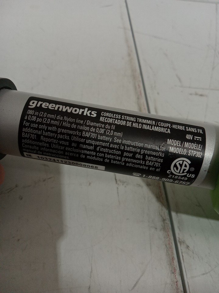 greenworks torqdrive cordless string trimmer *tool only* 40v, 15" - green (model: stp302)