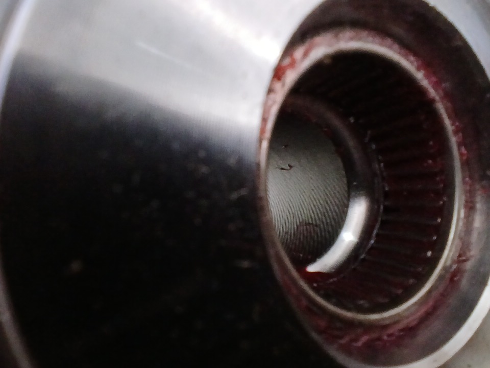 Has some lubrication inside and some scuffing/debris on the surface from being handled.