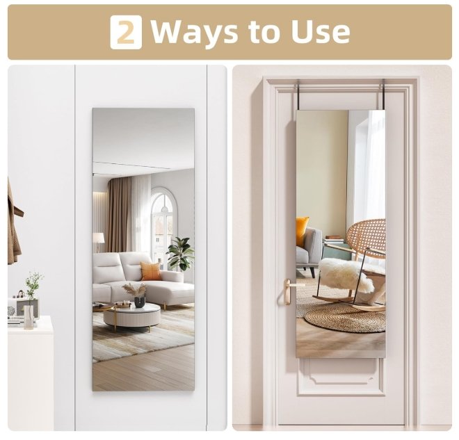 Hasipu Full Length Mirror with Hanging Wall Mount- 47"x 15.8" white