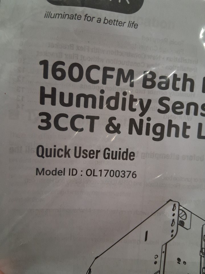 OREiN Bathroom Exhaust Fan with Light & Humidity Sensor - 3000k, 4000k, & 5000k with a night light at 2200k - white (model: ol1700376)