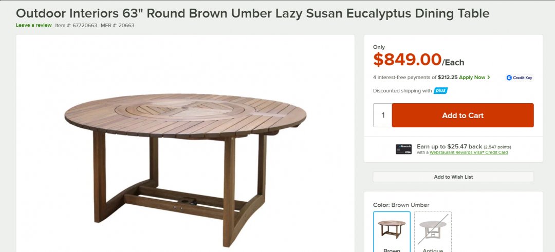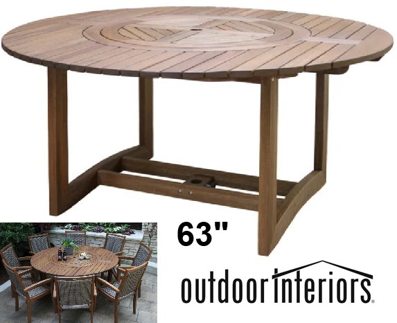 outdoor interiors round eucalyptus wood lazy Susanne outdoor table -63" - brown -(model: 21090GR)
