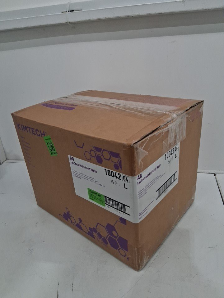 25PK UNISEX Kimtech™ A8 Certified Lab Coats with Knit Cuffs - LARGE - WHITE (MODEL: 10042 )