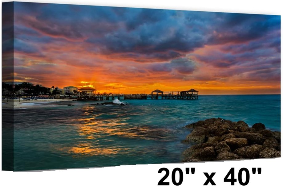 Wall Art Decor Canvas Print Painting - 20" x 40" - Seascape Ocean Sunset