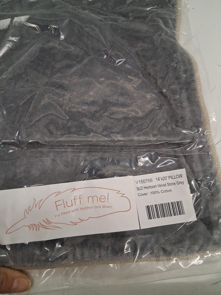2PC FLUFF ME Pillow WITH Heirloom Velvet COVER - 14" x 20" - Stone GrEY