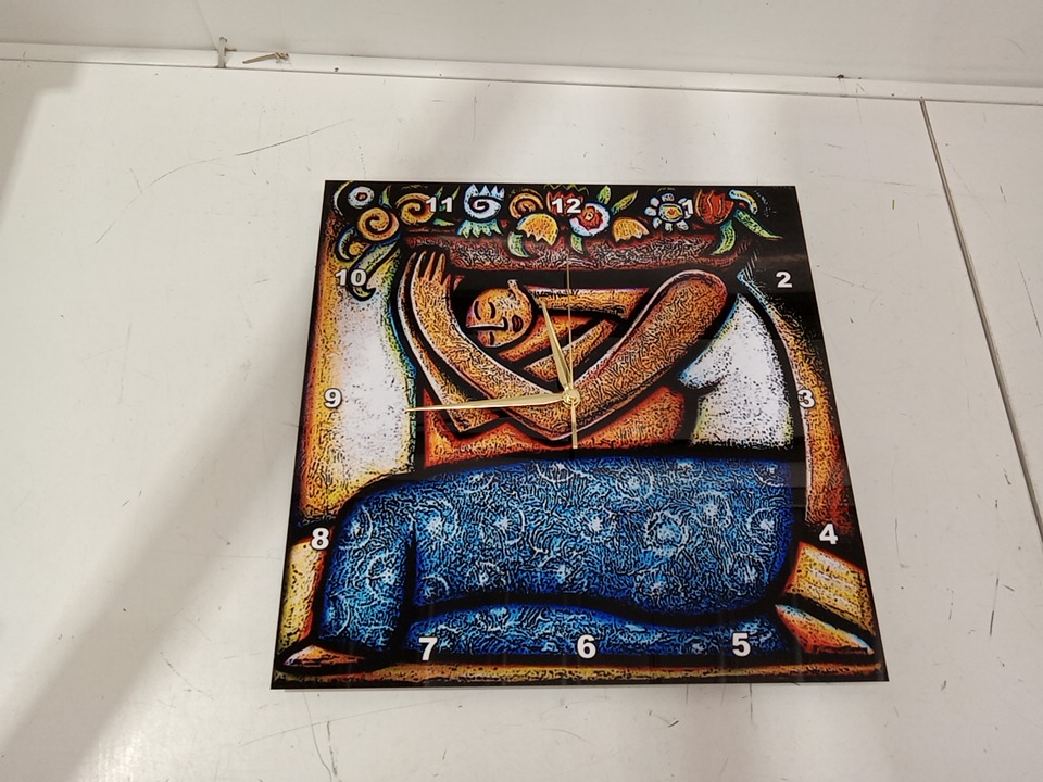 3drose square metal clock - "mexican flower girl" - 15" x 15" - multicolor