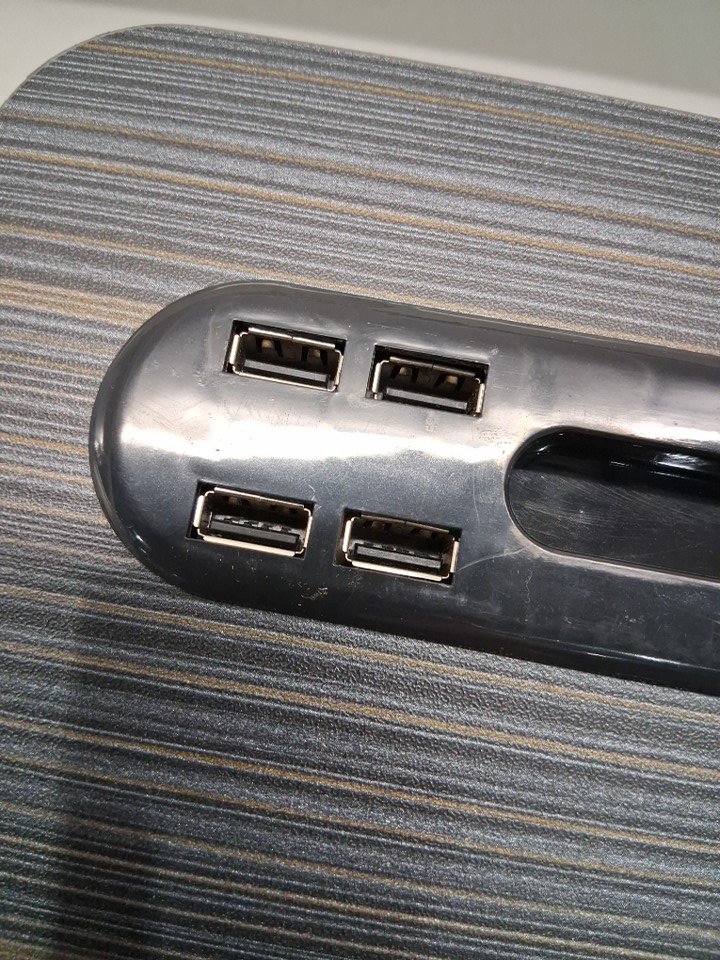 usb ports seem to be pushed in a bit but are still functioning and there is some slight damage to the metal on the legs and bar across the top please see photos