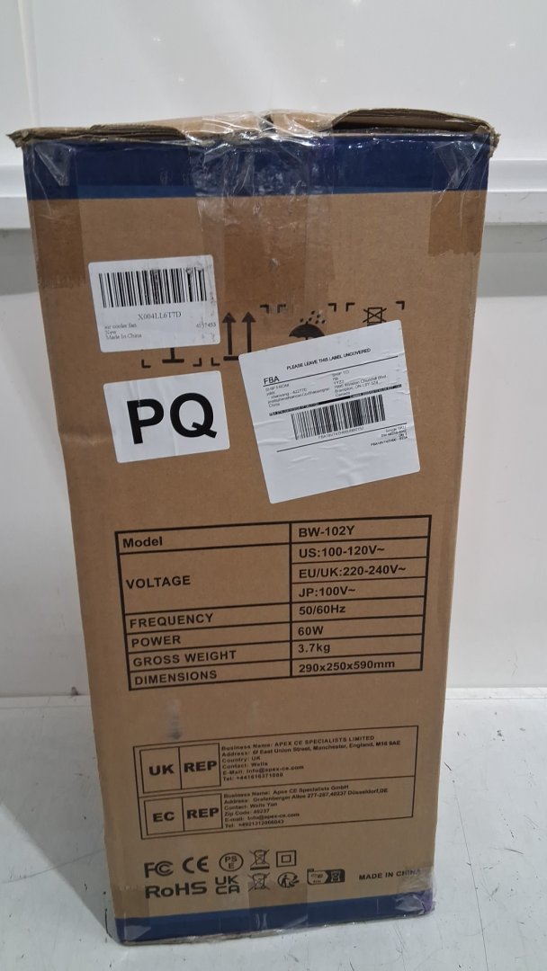 Portable 3-speed evaporative air cooler with remote control - 1.6gal capacity - 30" - white/grey (model: bw-102y)