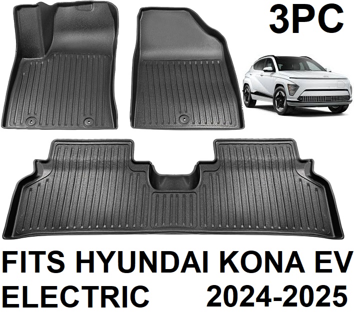 BestEvMod All Weather Floor Mats Compatible with HYUNDAI KONA EV ELECTRIC 2024 2025 for 1st & 2nd Rows Set