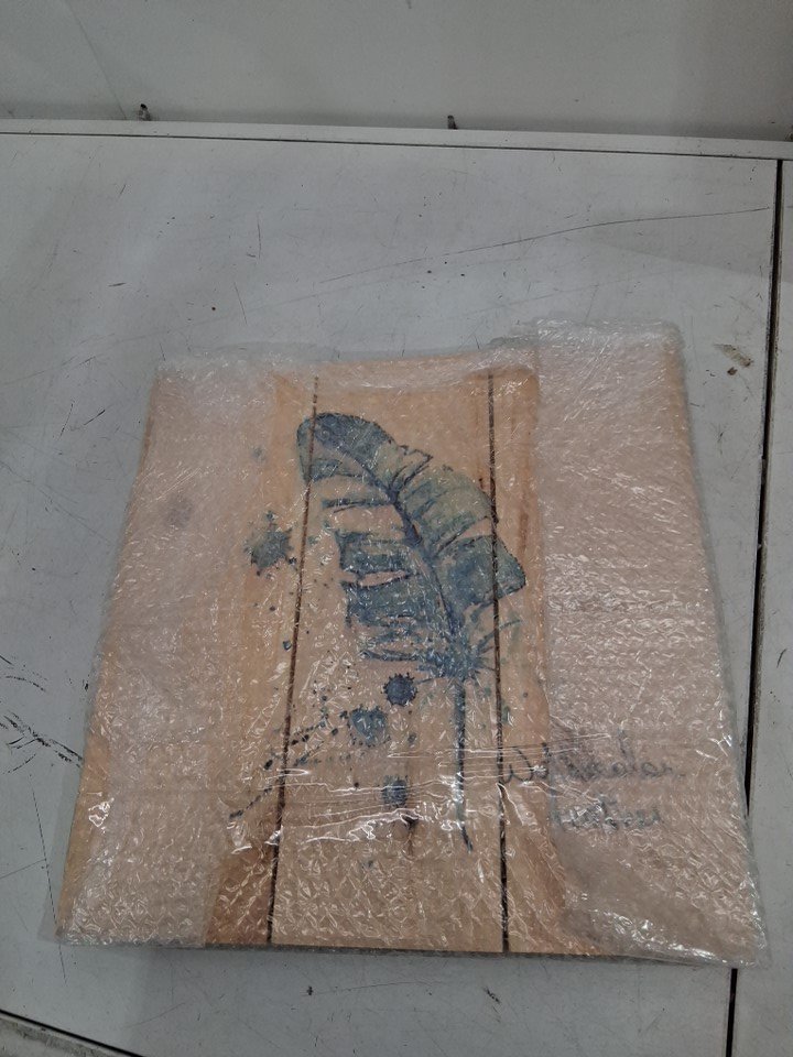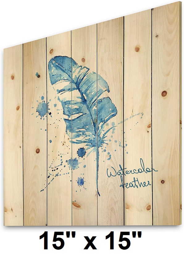 DesignQ Ethnic Blue Feather Bohemian & Eclectic Print on Natural Pine Wood - 15" x 15" - wood