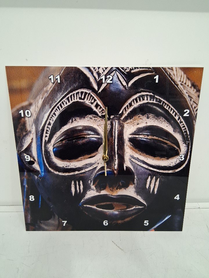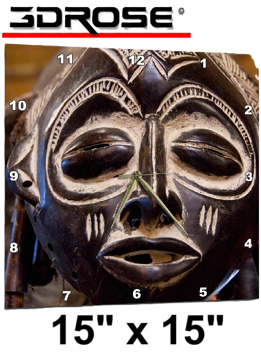 3DRose Decorative Wall Clock - 15" x 15" - Zulu Tribe Mask (Model: dpp_69536_3)