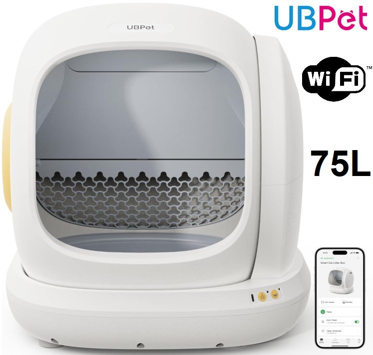 ubpet ucat smart automatic cat litter box with wifi app connection - 75L - white (model: c20)