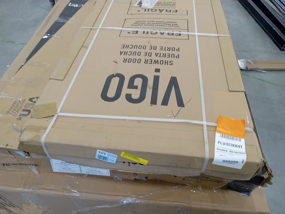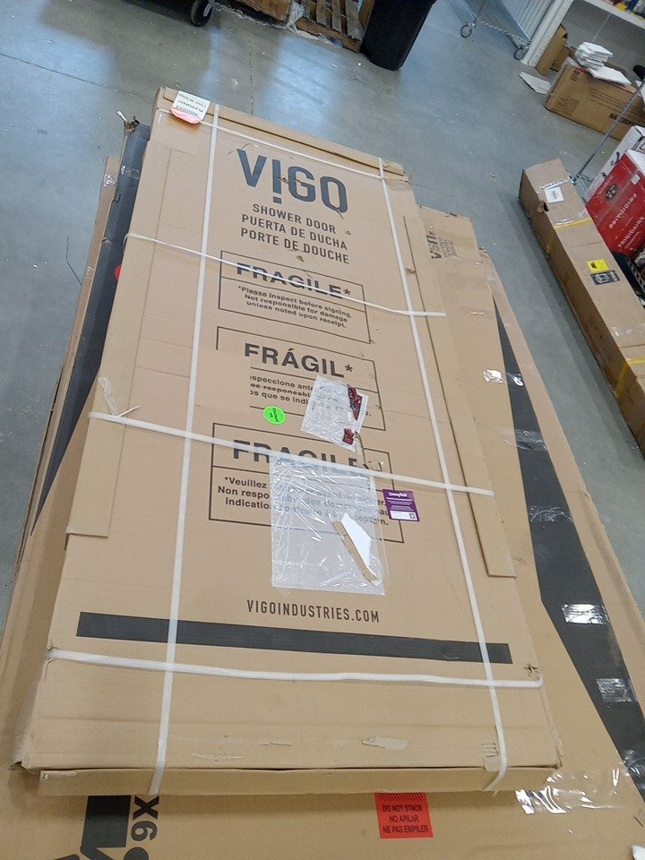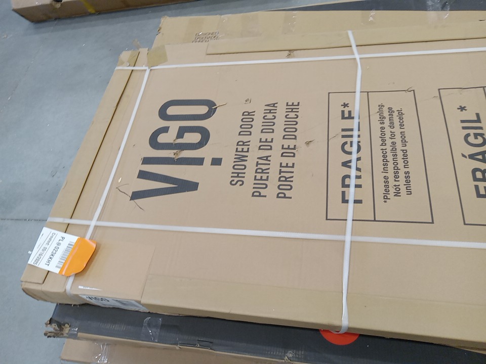 VIGO Elan Frameless Sliding Shower Door with Fluted Tempered Glass Panels, Sleek Roller System, Reversible Left/Right Installation and Matching Handle - Chrome 56–60" W x 74"