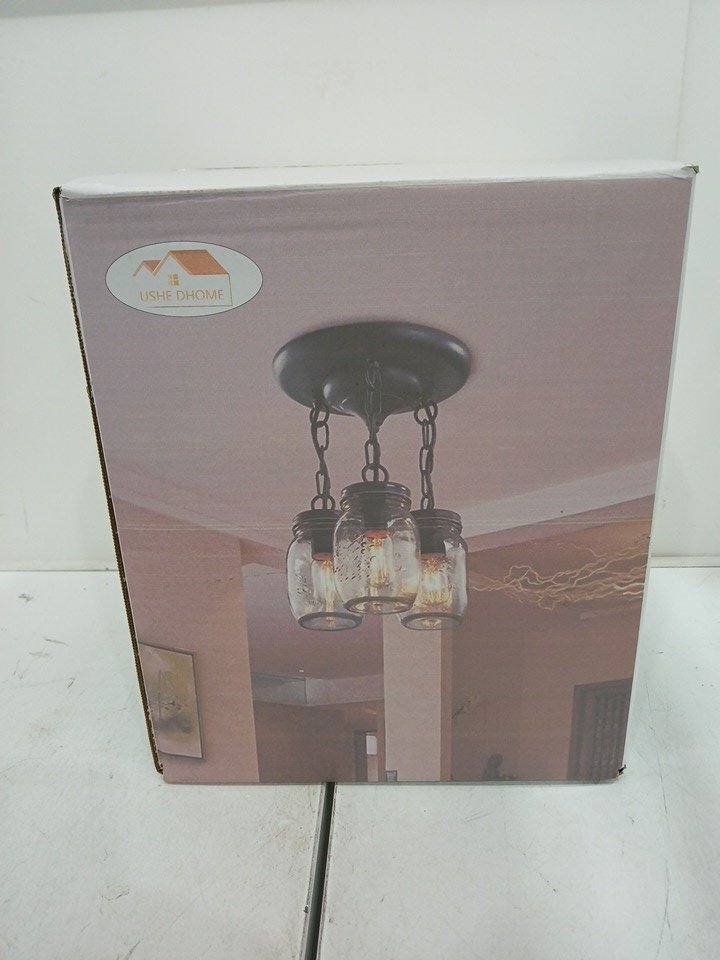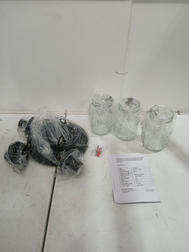 ushe dhome mason jar 3-light ceiling chandelier - black (model: ‎AY-0836-3C-BK)