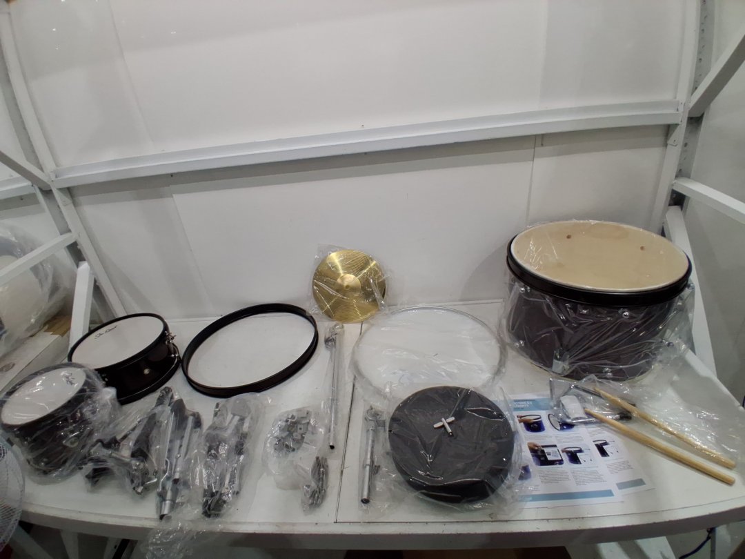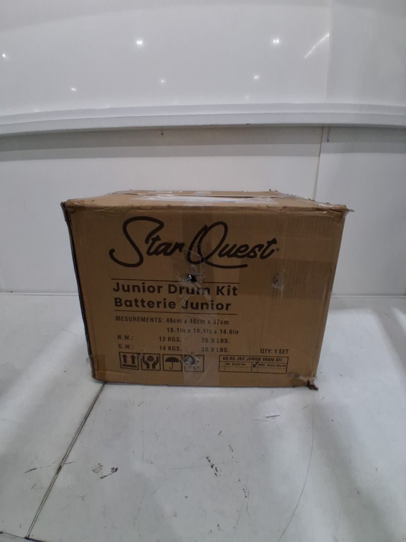 3pc StarQuest Junior-Sized Drum Kit with 16"Bass, Drumsticks, Snare, Cymbal, Tom & Adjustable Stool-17.72" x 17.72" x 13.78"-Metallic Wine Red-(model:SQ-DS-JR5-MWR)