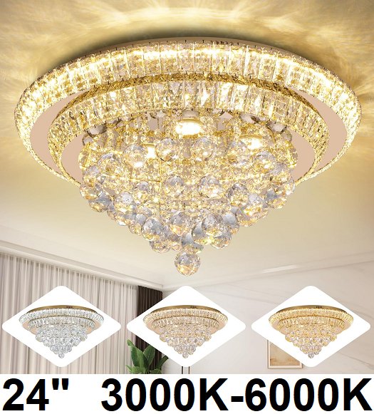 abisgpt Modern Luxury Flush Mount Gold Chandelier with Remote - 3000k/6000k - 24" - GOLD