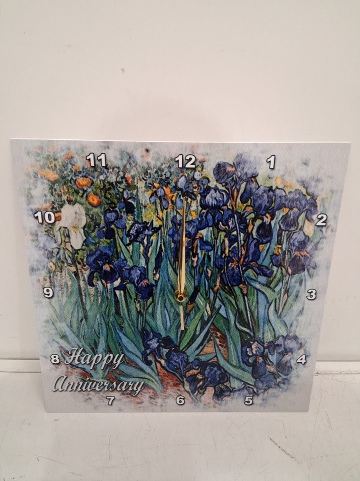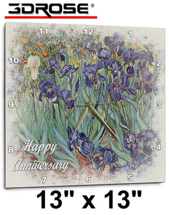 3DRose Decorative Wall Clock - 13" x 13" - Happy Anniversary Flowers (Model: dpp_46954_2)
