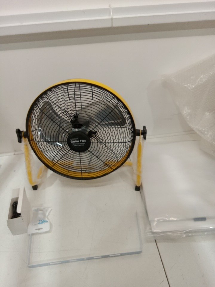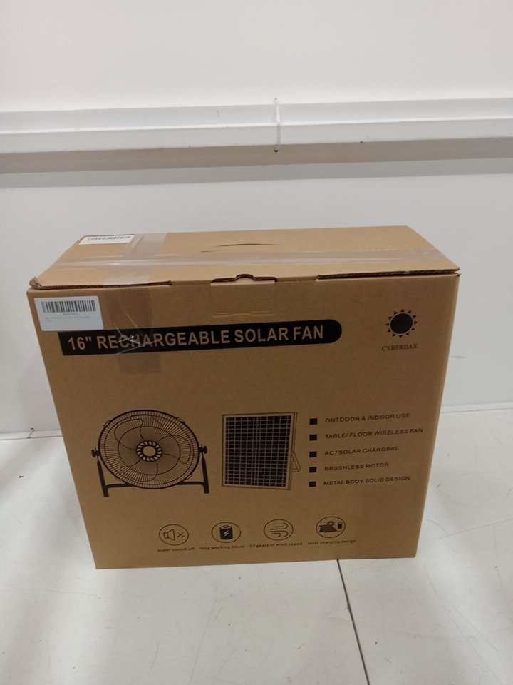 cyberdex portable rechargeable solar fan - 16" - 12 speeds - 11.1v - up to 50hrs runtime - black/yellow (model: cdx-232-16b)