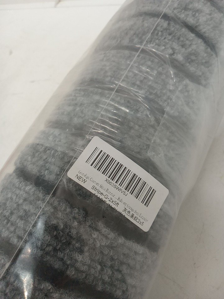 GOTOHIPI non-slip low pile indoor/outdoor runner rug carpet - 2ft x 5ft - grey stripe