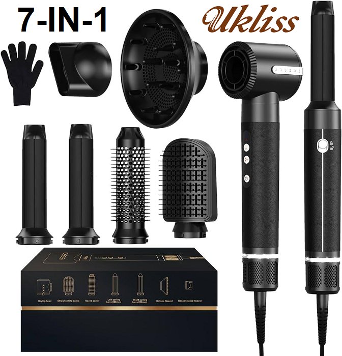 yintrust 7-in-1 high speed ionic hair dryer with attachments - 3 temps/3 speeds - black - (model: wt-626).