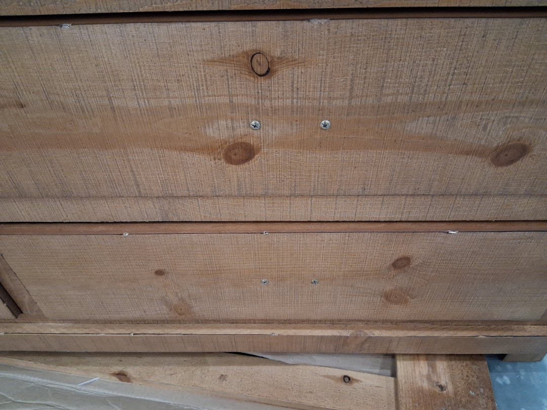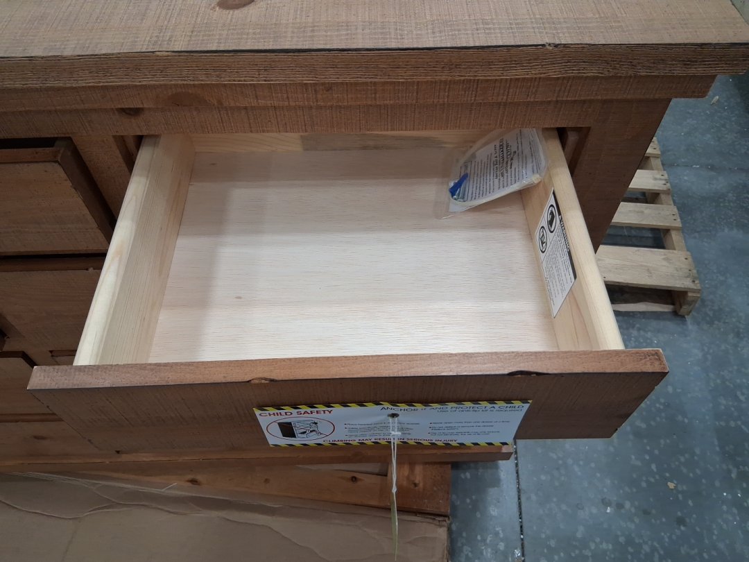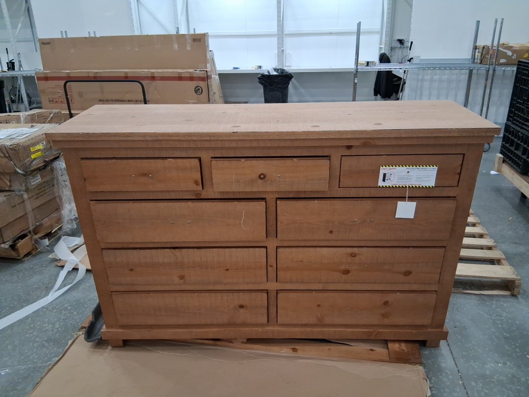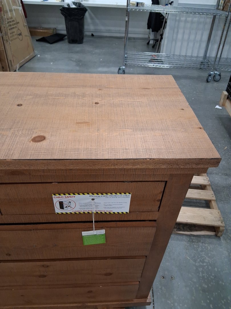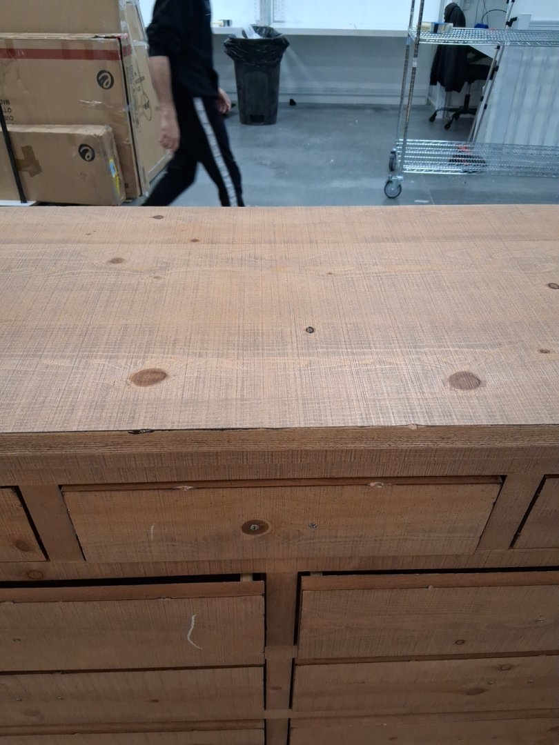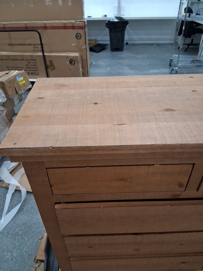 Dents on edges of dresser top, drawers and side, a few scrapes on drawers, see photos. This item is quite large, please bring an appropriate vehicle and manpower for pick up