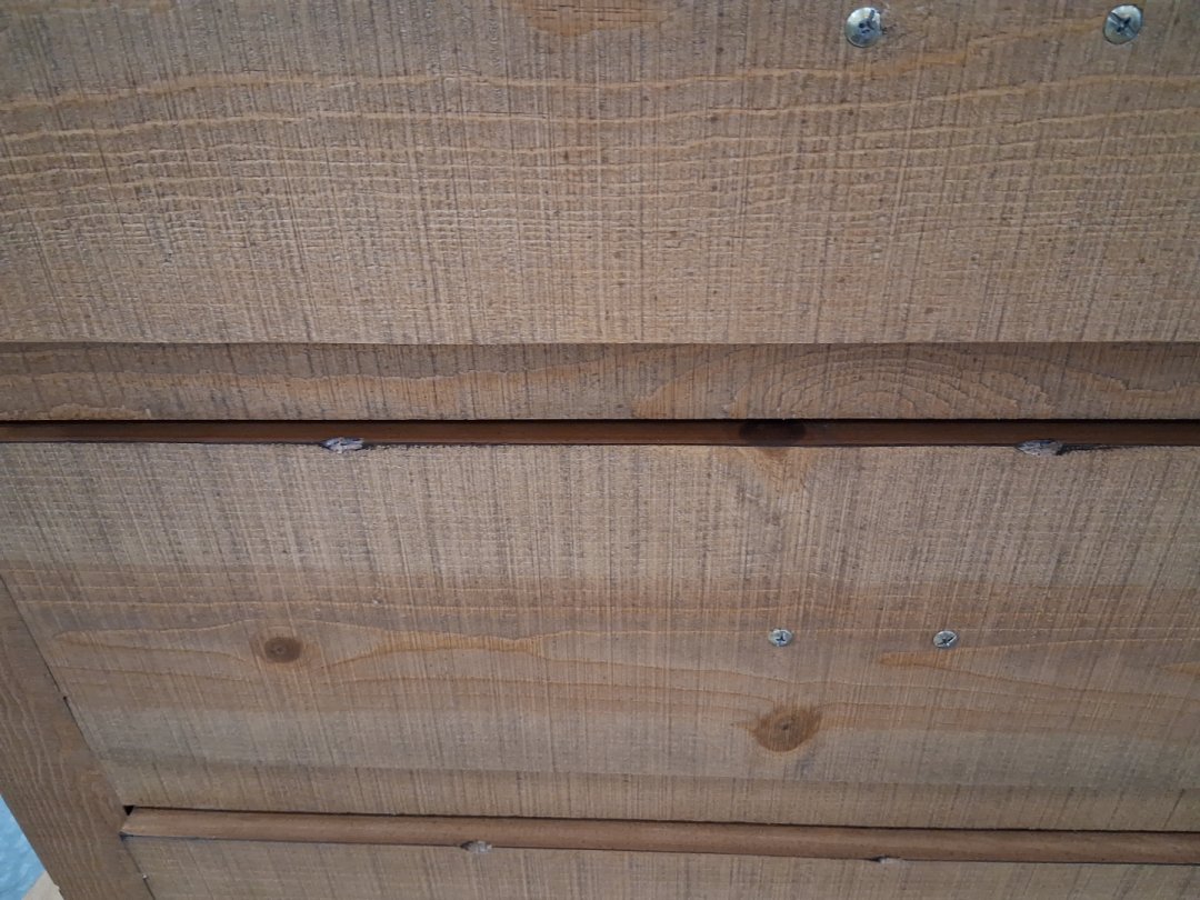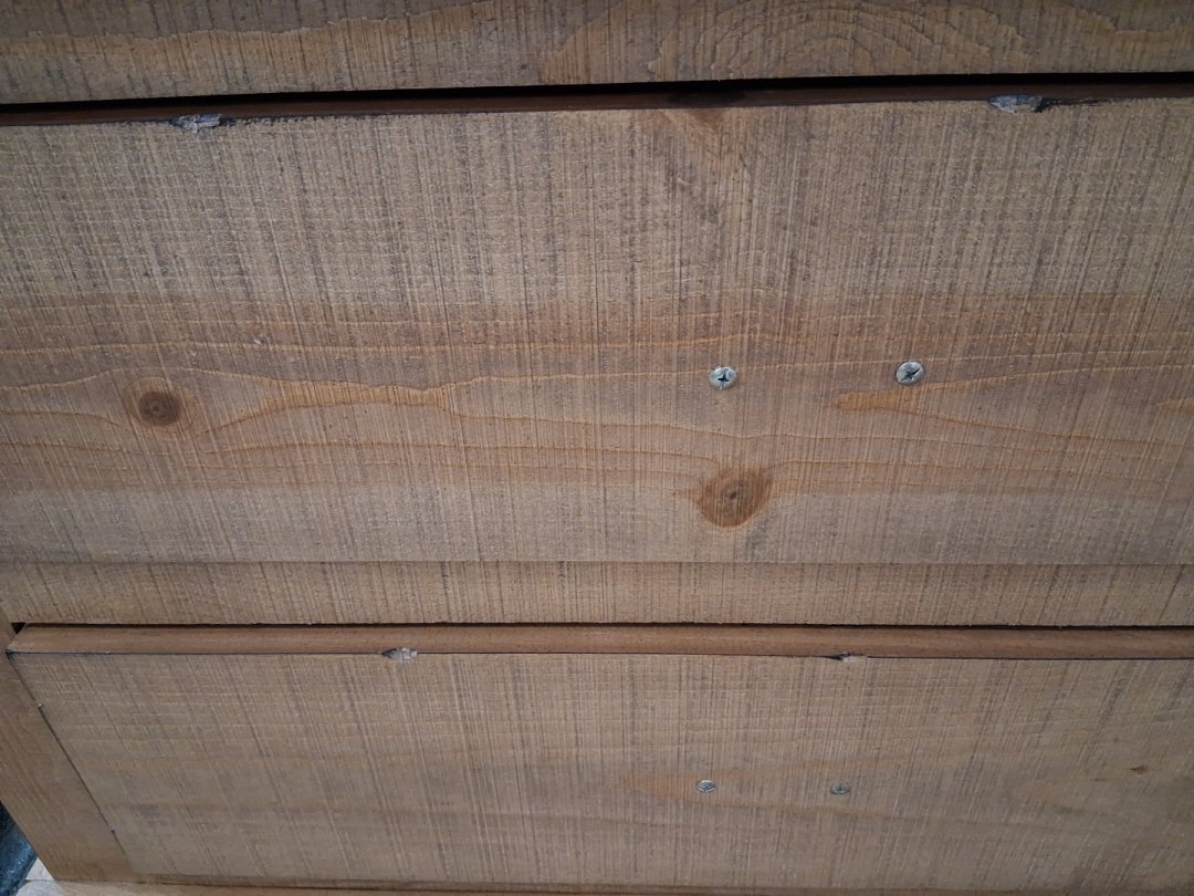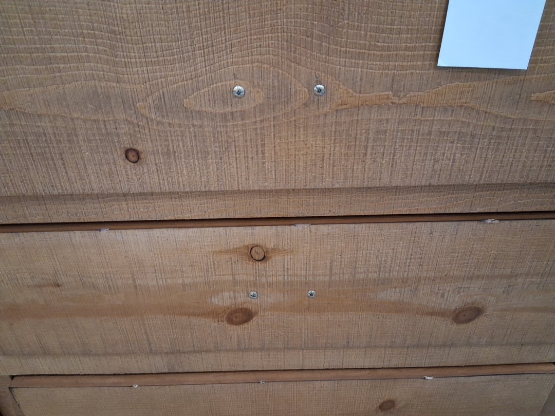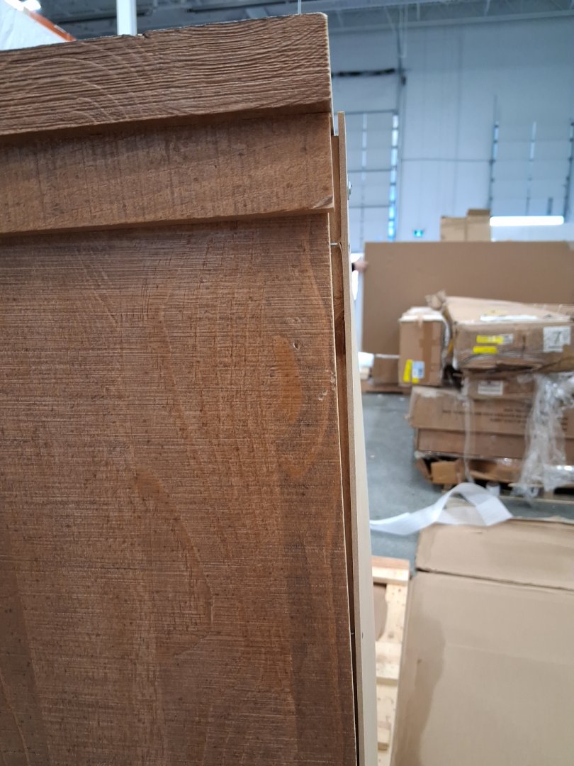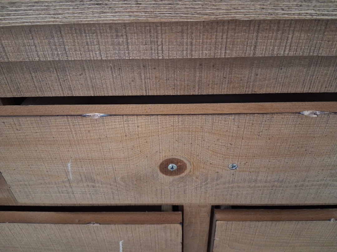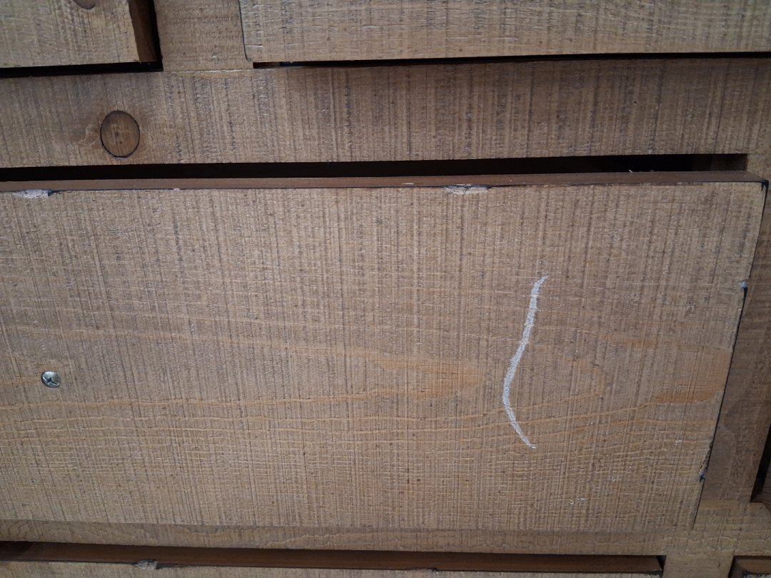 Dents on edges of dresser top, drawers and side, a few scrapes on drawers, see photos. This item is quite large, please bring an appropriate vehicle and manpower for pick up