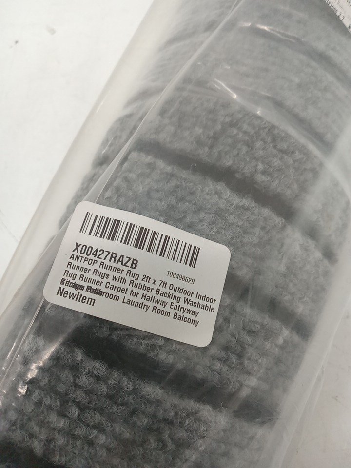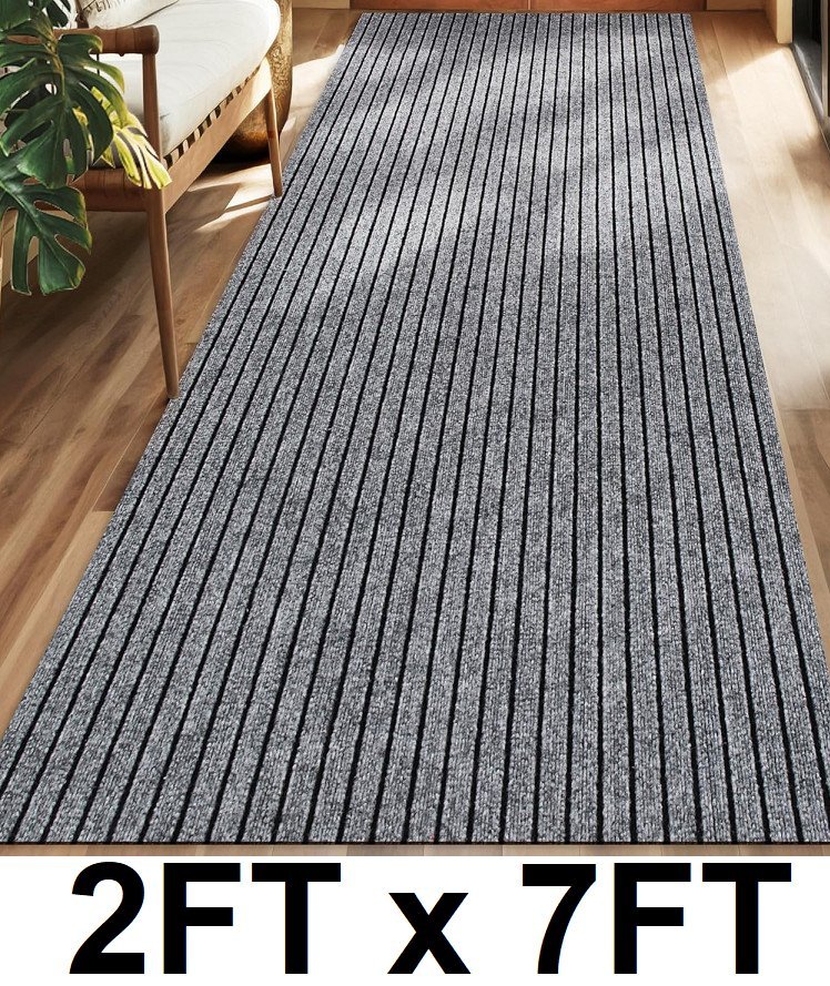 antpop non-slip low pile indoor/outdoor runner rug carpet - 2ft x 7ft - grey stripe
