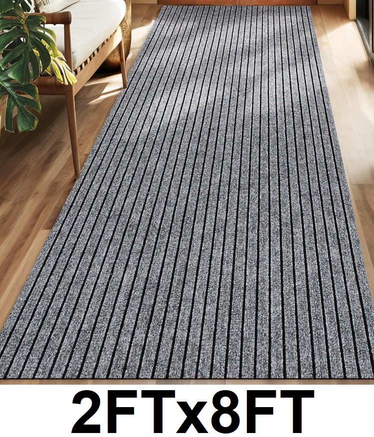 antpop non-slip low pile indoor/outdoor runner rug carpet - 2ft x 8ft - grey stripe