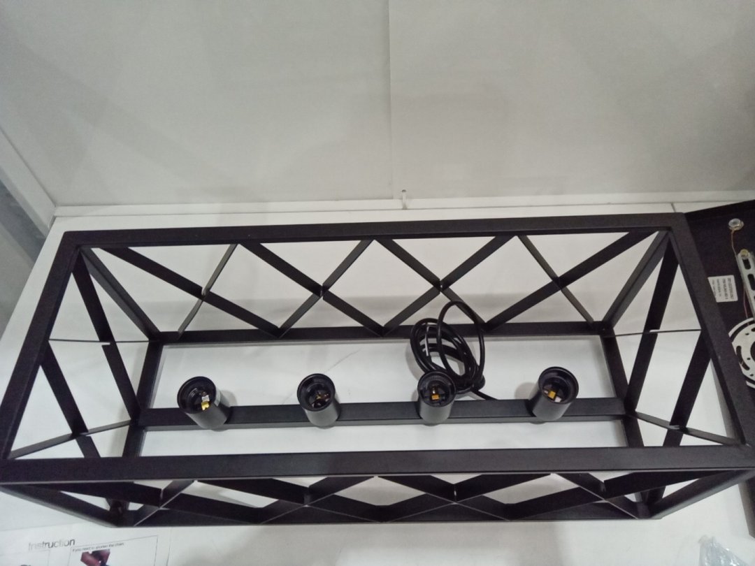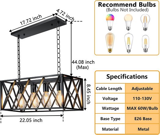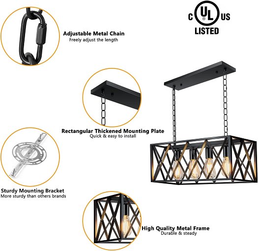 Pynsseu Industrial Kitchen Island Pendant Lighting Rectangular Vintage 4-Light Ceiling Hanging - 22.05" x 8.45" - black - (model:IND-002-X)