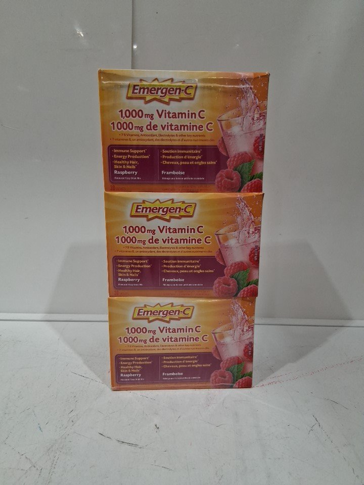 3 (30PK) EMERGEN-C VITAMIN C +7B VITAMINS, ANTIOXIDANT AND ELECTROLYTES FOR IMMUNE SUPPORT - 1000MG - RASPBERRY