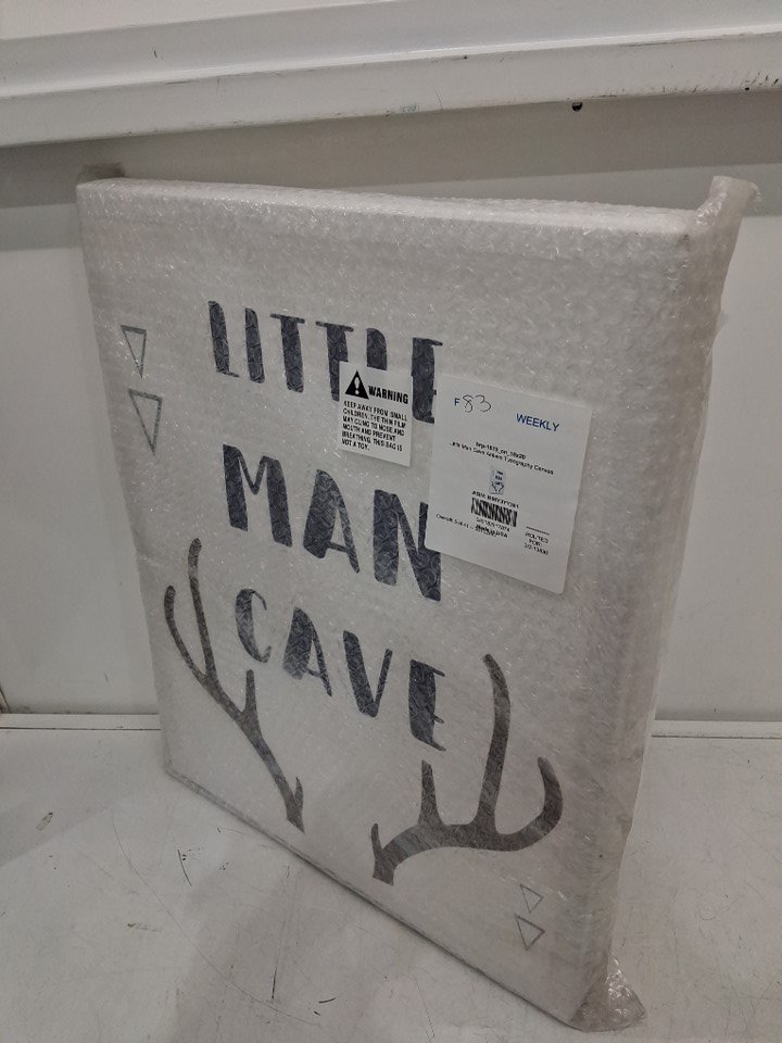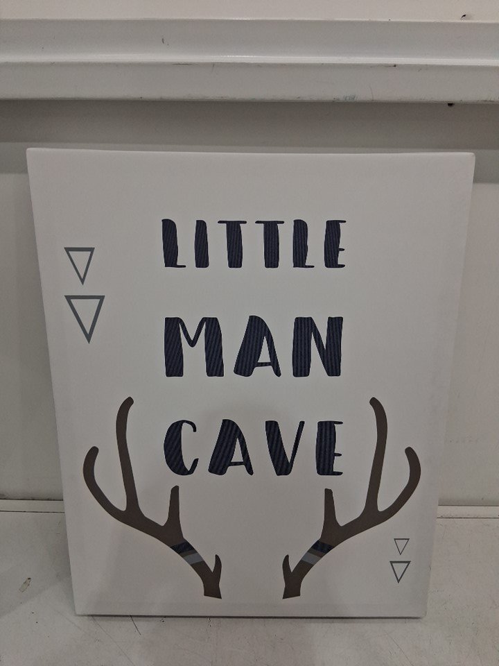 Stupell Industries Wood Grain Stretched Canvas Wall Art - 16" x 20" - Little Man Cave Antlers (Model: brp-2105_cn)