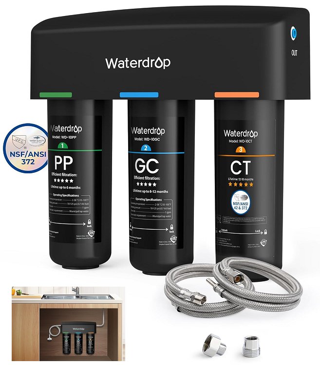 Waterdrop triple stage TSA 8 Layer Under Sink Water Filter System - Reduces PFAS, PFOA/PFOS, Fluoride, Chlorine, Bad Taste & Odor, NSF/ANSI 42 Certified Element - black (model: wd-tsa-10)