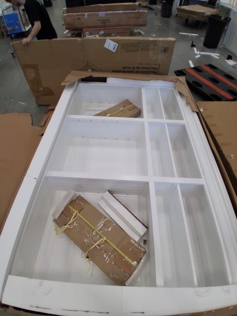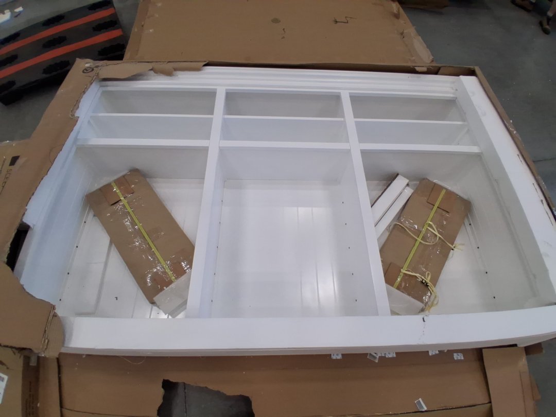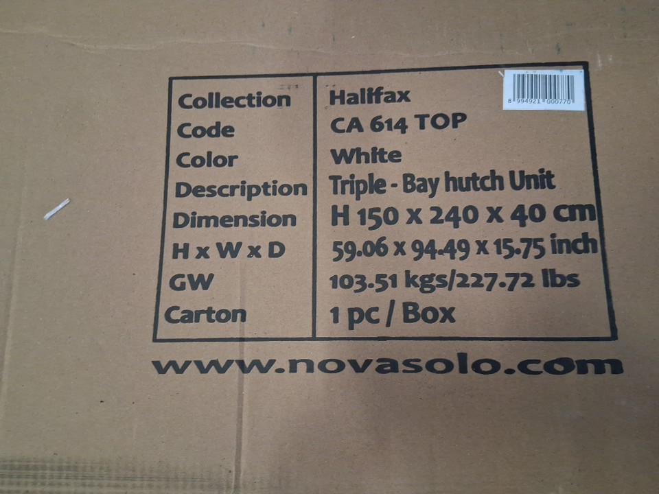 Please be aware that this item is very large and heavy (228lbs), and the box is quite damaged and being held together with shipping tape. Customer should be sure to bring adequate transport and assistance for the loading process.