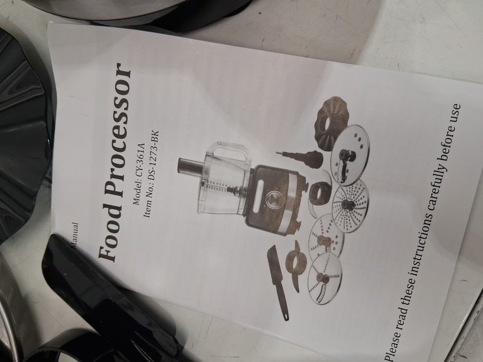 Some food marks on the outside of the processor and the inside, item was tested for power only, see photos.