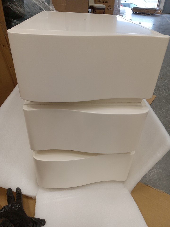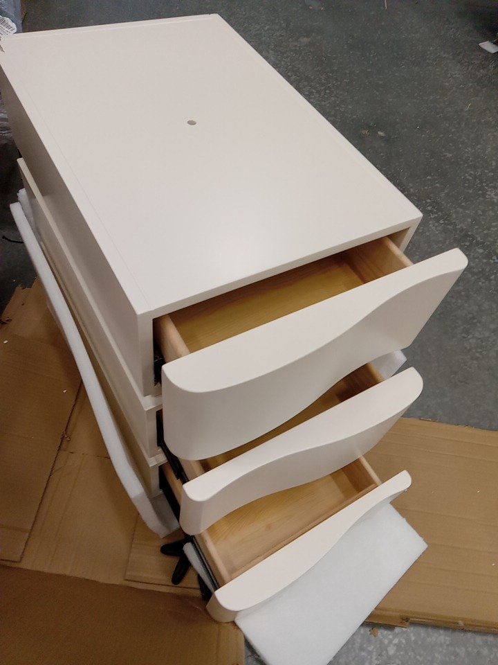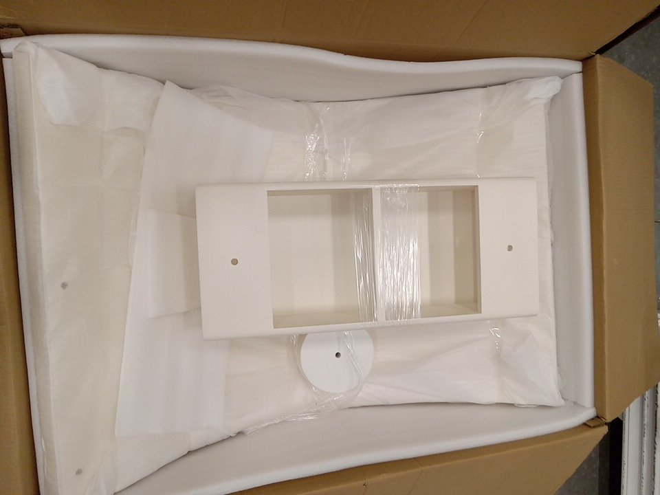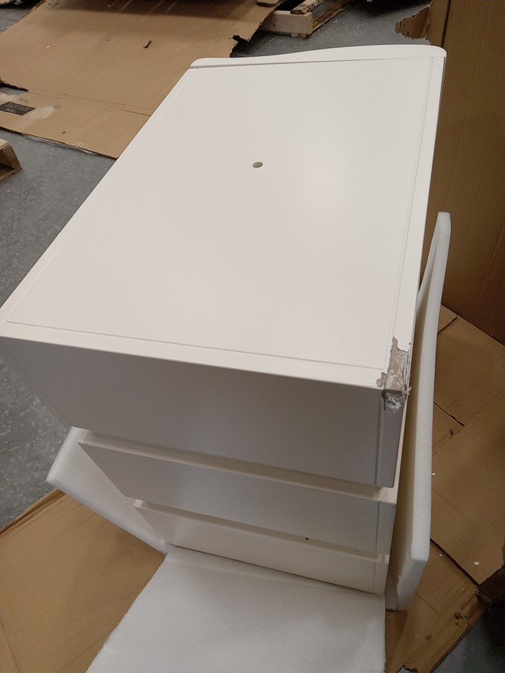 The left back corner of the cabinet is damaged from shipping. please see photos.