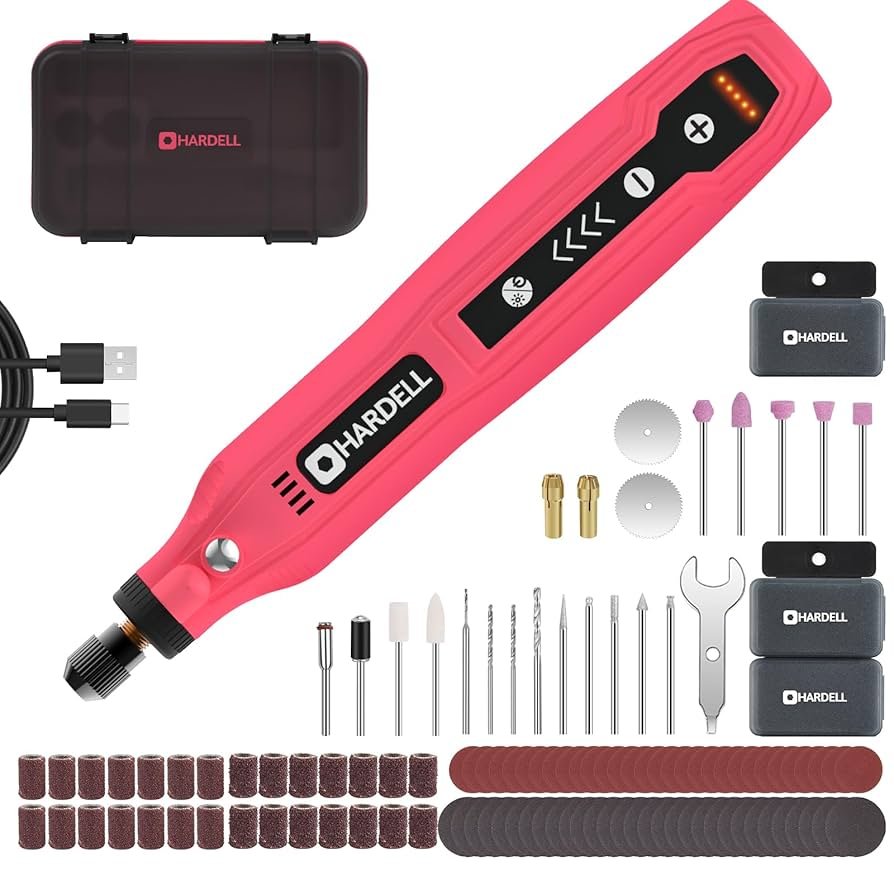 hardell mini cordless multi-purpose rotary tool with accessories - pink/black