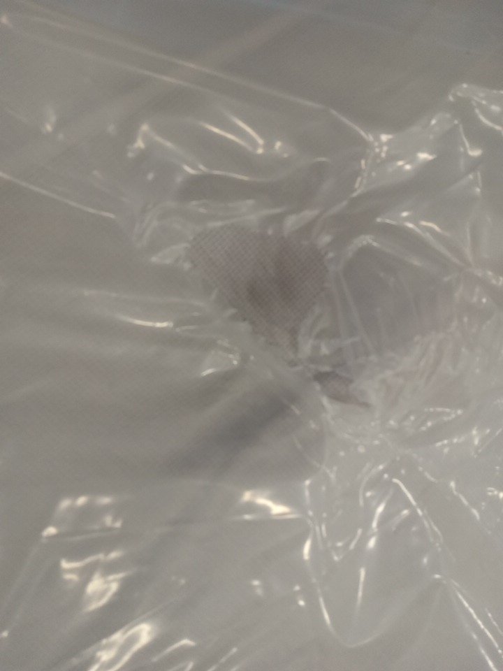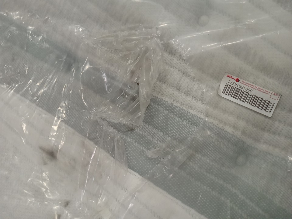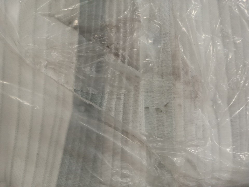 Item appears new, however the plastic wrap got damaged while loose shipping/handling there are dirt marks and stains present on the mattress.