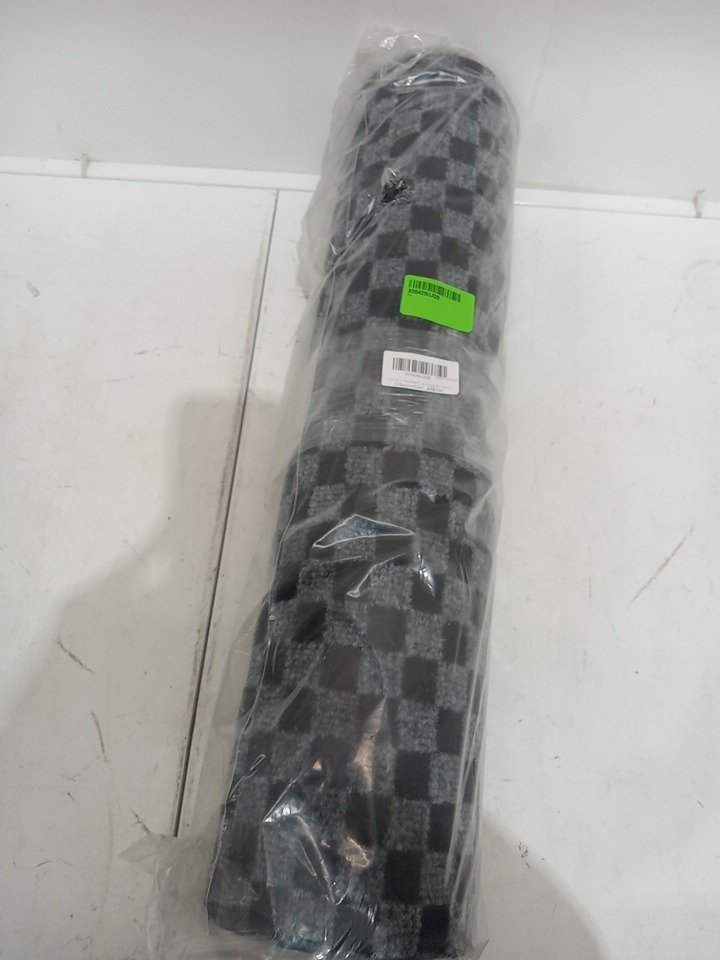 GOTOHIPI non-slip indoor/outdoor washable low-pile runner rug carpet - 2ft x 9ft - GREY checkered