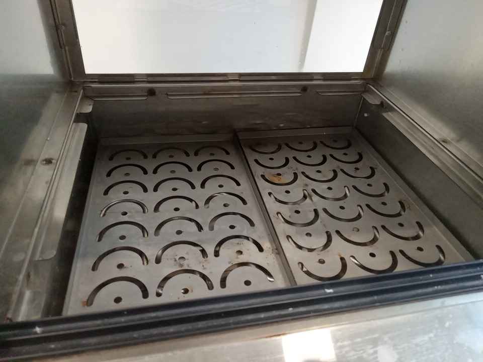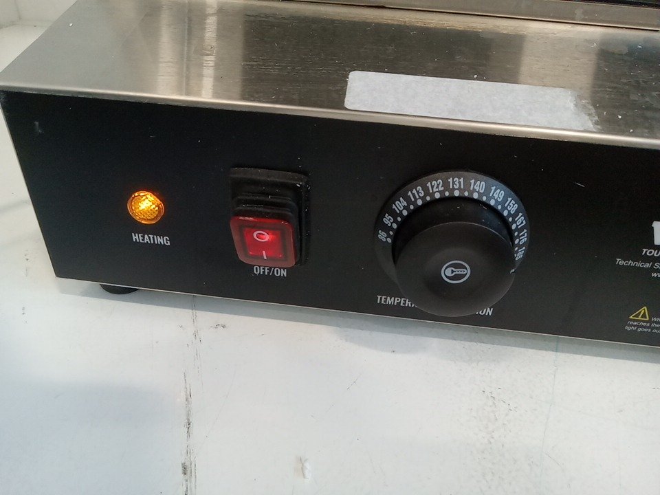 The bottom layer of the item has some residues present and some rust indicating prior usage, tested for power. See photos for reference.