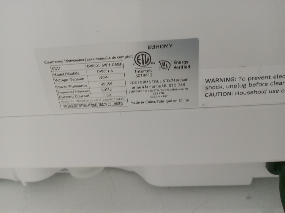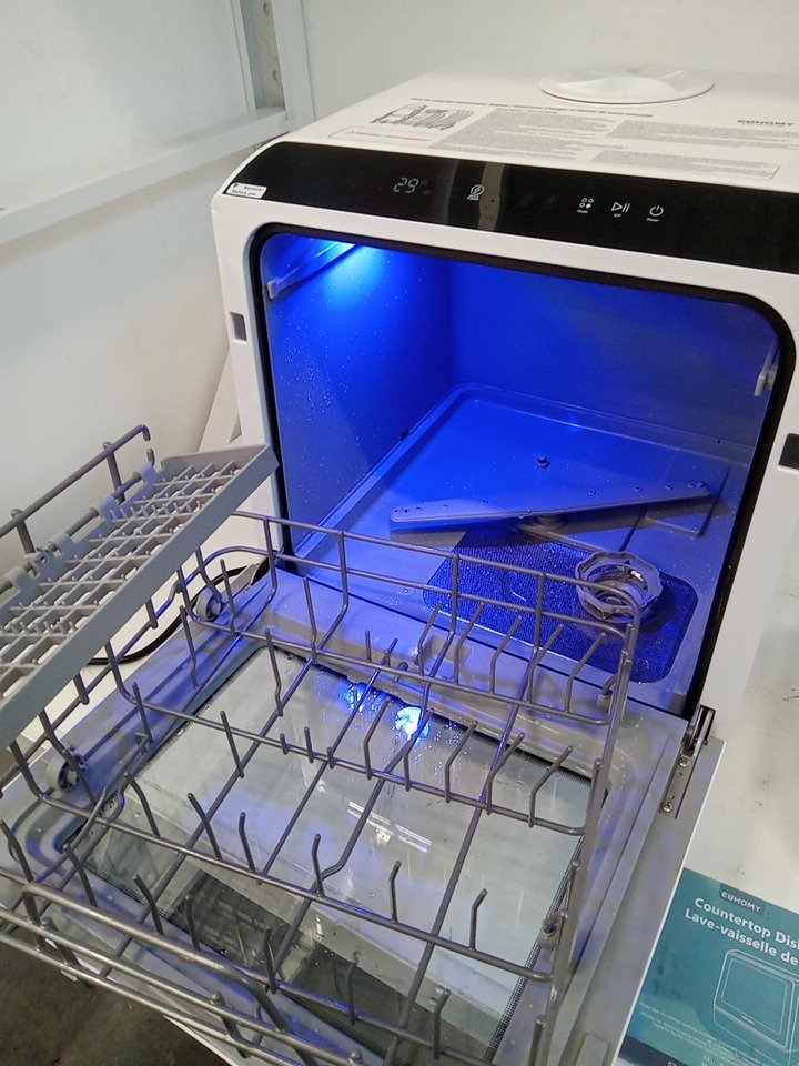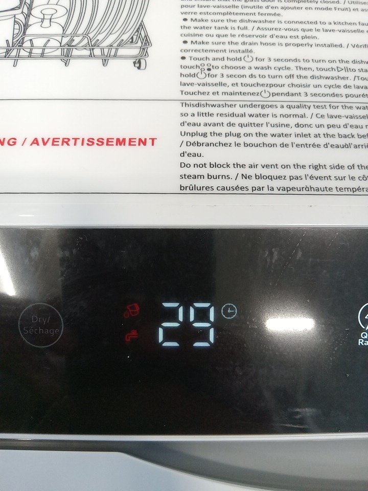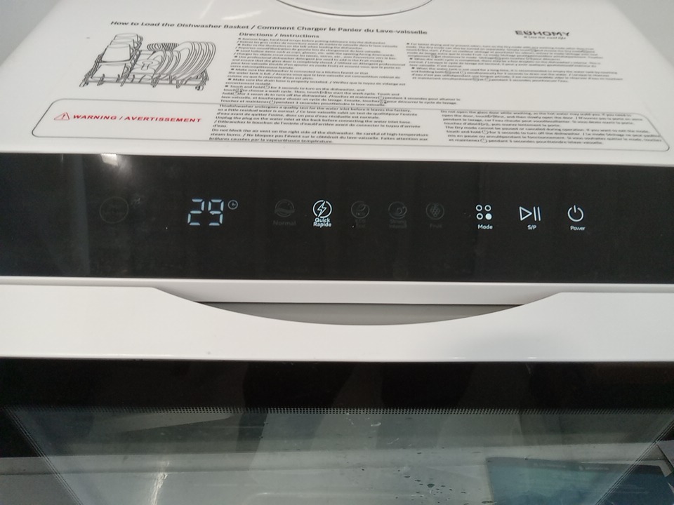 liquid present inside the dishwasher indicates prior use, tested for basic power. See photos for reference.