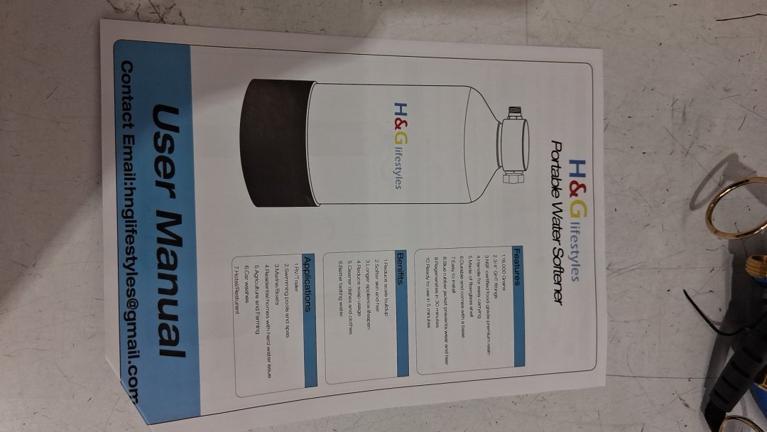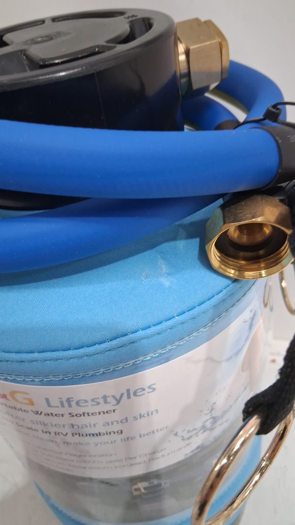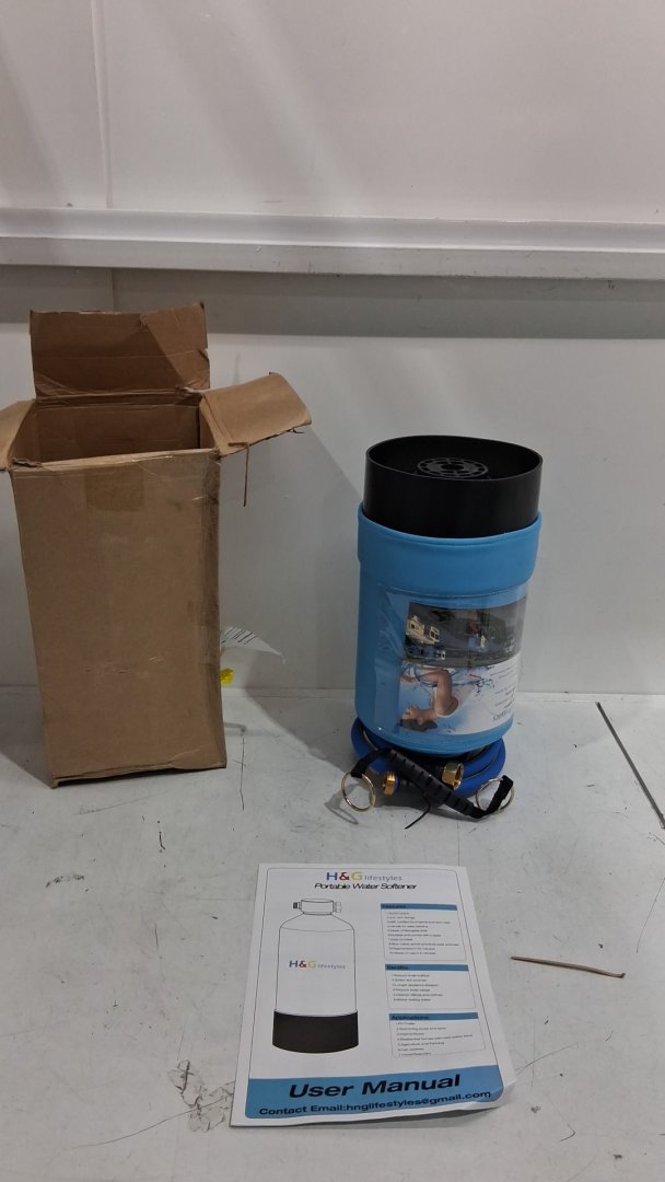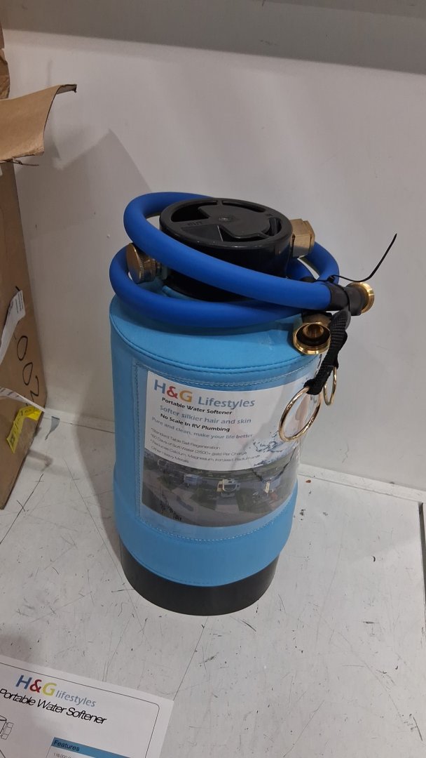 h&g lifestyles portable hard water softener filtration system for RV with hose - 2600gallon - 3/4" brass fittings - 16,000 grains - blue