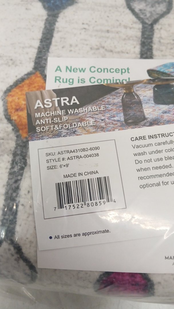 MANDALA RUGS ASTRA COLLECTION MACHINE WASHABLE AREA RUG - 6ft x 9ft - WHITE/MULTI (MODEL: astra4310b2-6090)