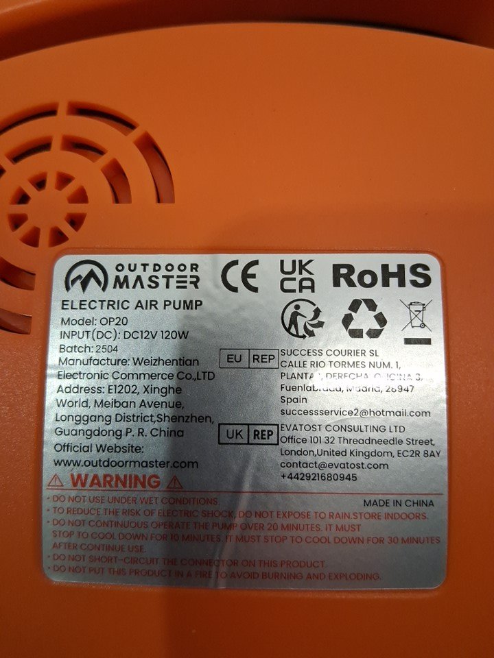 Outdoor Master "The Shark" 2nd Gen Sup Pump - 12V - 20PSI - Black/Orange (Model: OP20)