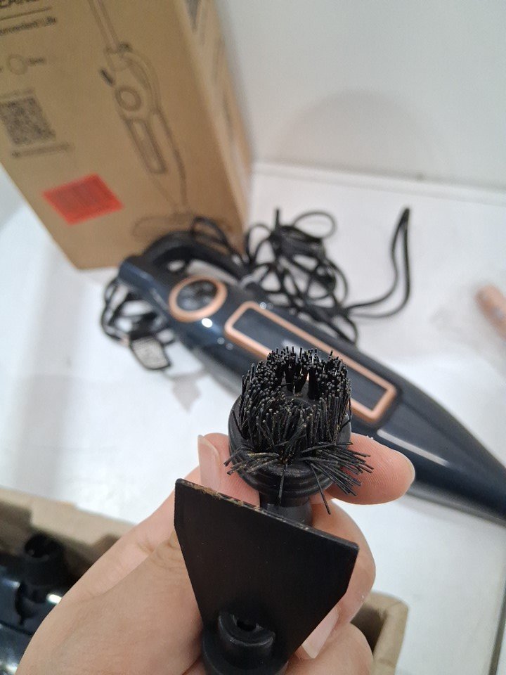 please note the main body of the steamer has some dirt/dust marks, 2 attachments have some residue and there is water left in the water chamber from previous use