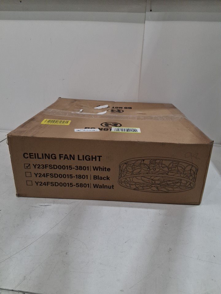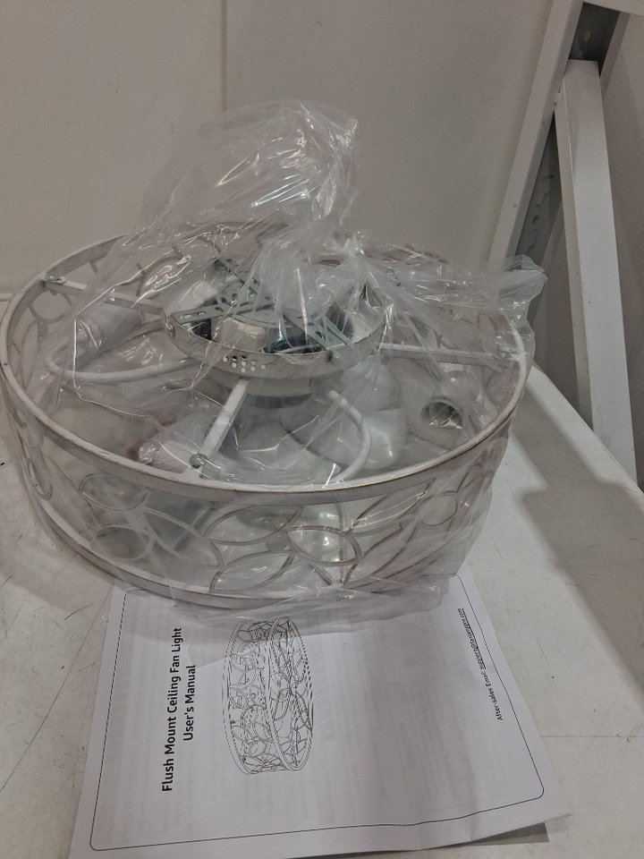 HINNIXY INDOOR CEILING flush MOUNTED cage reversible ceiling fan light with remote control - 18" - e26 - rustic distressed white / gold (model: Y23FSD0015-3801)