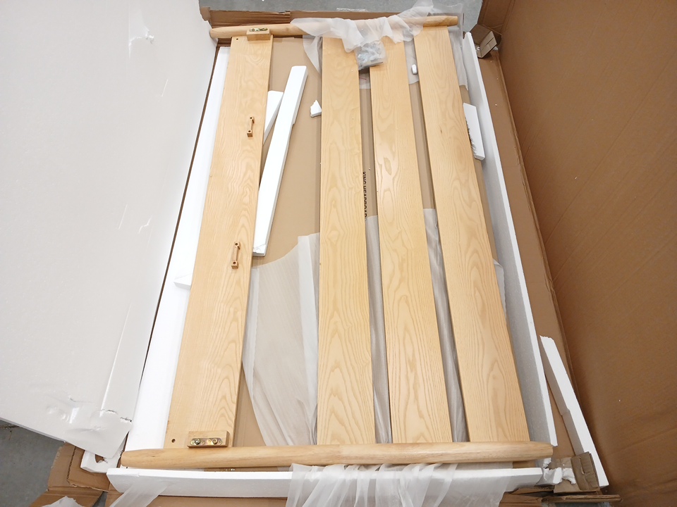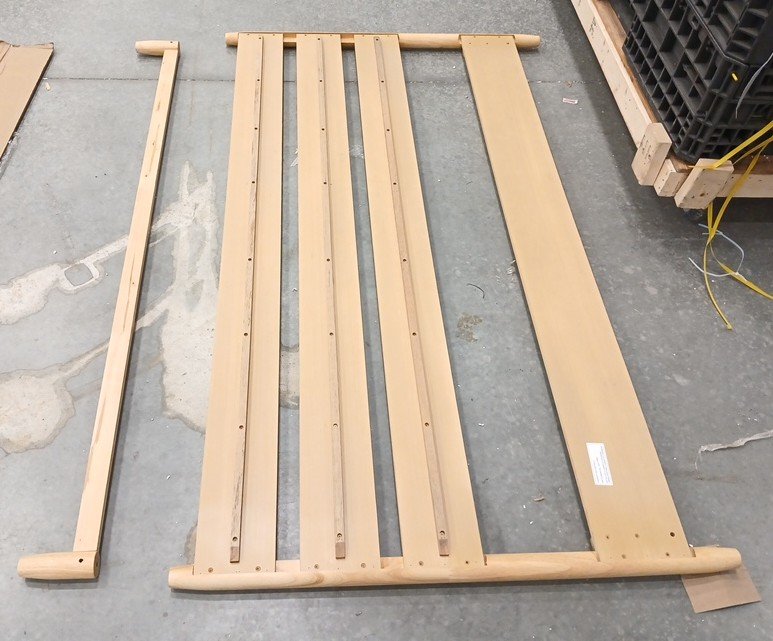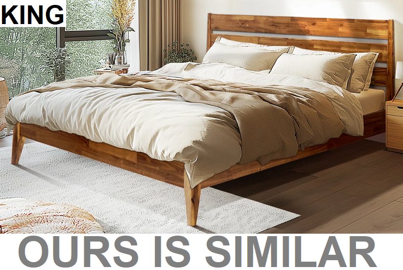 Our item is a different shade of brown, our legs are different, our footboard looks different, and the sides of our item's headboard looks different. This listing only includes a headboard, footboard, and wood slats. Additional hardware is required