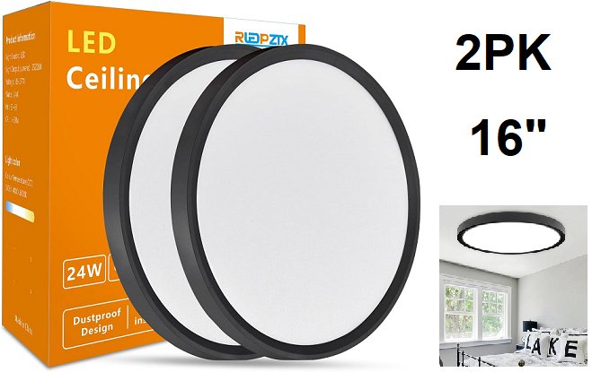 2pk RLEDPZTX Led Flush Mount Ceiling Lights - 16" - 3000k- 6000k - black