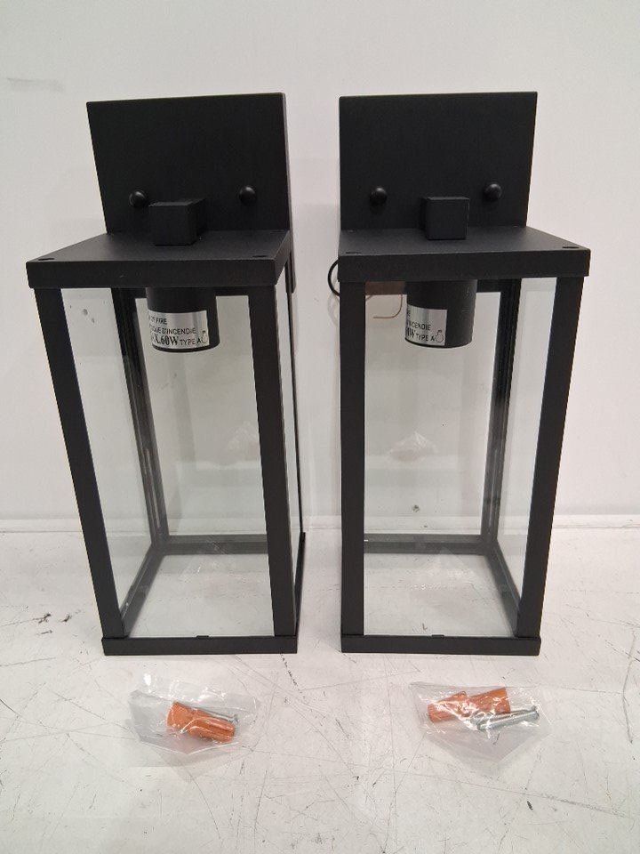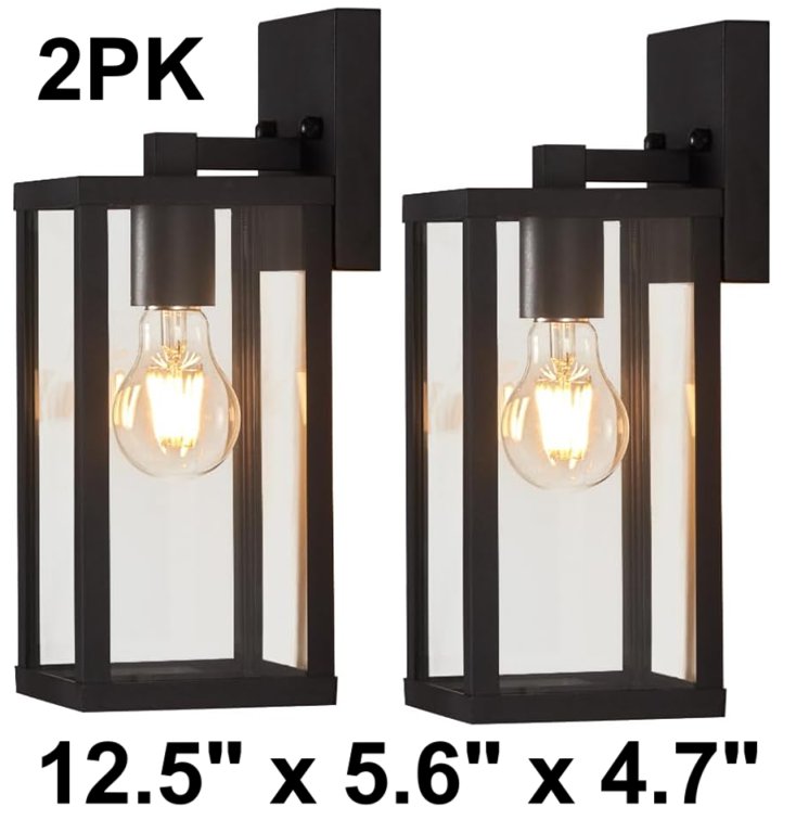 2PK Outdoor Modern Wall Mount Light Fixture - 12.5" x 5.6" x 4.7" - Black (Model: RB47-BK)